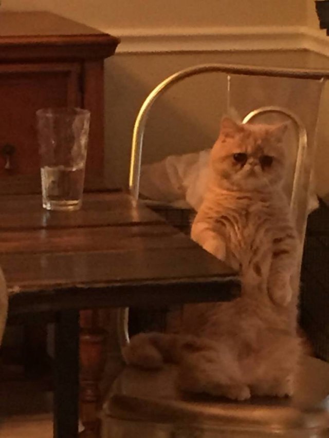 Precisamente, esa cara de disgusto y la excepcional pose que pone le han valido a George para ganarse el apodo de Garfield. Y para más inri, su dueño bromeó diciendo que "casualmente, pilló a su gato comiendo un plato de pasta que se había dejado sobre la mesa" y continuó: "todavía tengo que darle a probar lasaña, pero estoy seguro de que le encantará".