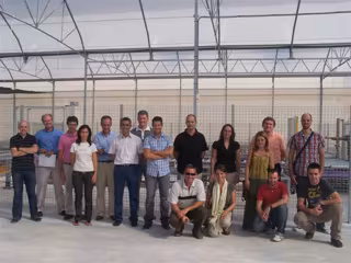 Un grupo integrado por una veintena de técnicos y responsables de investigación de las doce empresas españolas de primer nivel que participan en el proyecto de investigación agroindustrial 'Cenit Mediodía' que desarrolla la Fundación Cajamar se ha reunido en la Estación Experimental para supervisar el montaje de las instalaciones que se está realizando en el recinto.