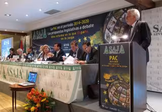 En la jornada organizada por Asaja-Sevilla, 'La Política Agraria Comunitaria (PAC) en el periodo 2014-2020. Las propuestas legislativas a debate', han participado el secretario de Estado del Medio Rural y Agua del MARM, Josep Puxeu Rocamora; el presidente de la Comisión Mixta del Congreso de los Diputados para la Unión Europea, Miguel Arias Cañete; la consejera de Agricultura y Pesca, Clara Aguilera; junto al miembro de la Comisión de Agricultura del Parlamento Europeo, Gabriel Mato; el consejero de Agricultura, Medio Ambiente y Territorio de Baleares, Gabriel Company, y el presidente de Asaja, Pedro Barato.