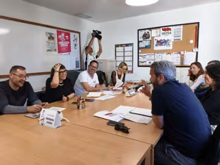 El portavoz de Adelante Andalucía, José Ignacio García, se reune con miembros del sindicato Ustea en Almería. - ADELANTE ANDALUCÍA
