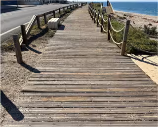 En la relación de trabajos a ejecutar se ha incluido la demolición de cimentación de hormigón, reparación de pavimento de madera y bancos, desmontaje y reposición de trasera de biondas mixtas (madera-metal), levantado de pavimento de madera existente en acceso a duchas, refinamiento y nivelación de la explanada existente en acceso a duchas y la ejecución de tarima de madera para exterior en el área de acceso a duchas y vados peatonales.