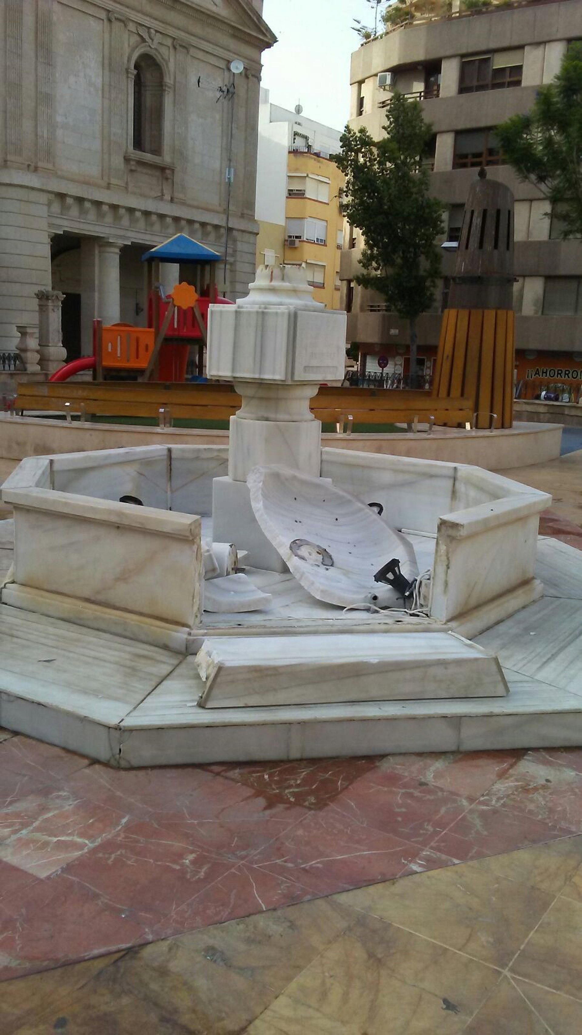 El alcalde de Almería, Ramón Fernández-Pacheco, ha criticado este miércoles el estado de destrozo en el que se han encontrado a primera hora la fuente de la Plaza de San Pedro de la capital, cuyos vasos han quedado deteriorados y los restos esparcidos por la zona, si bien a lo largo del día los operarios han conseguido repararla.