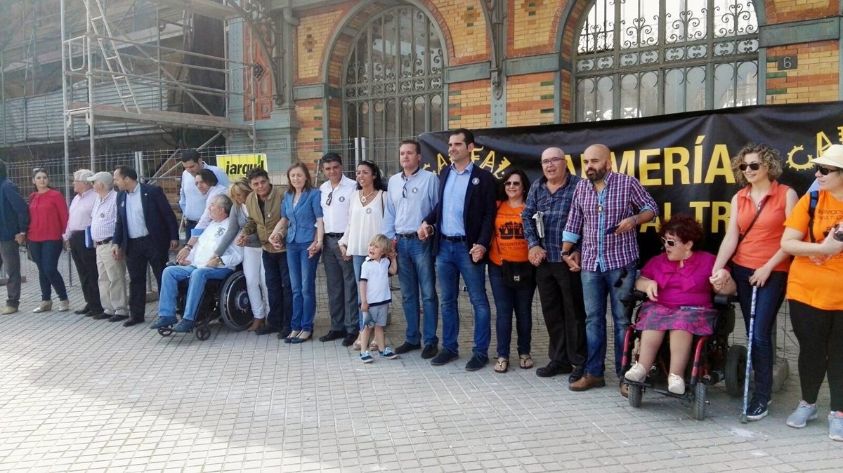 El alcalde de Almería, Ramón Fernández-Pacheco (PP), se ha sumado este sábado al acto organizado por la Mesa en Defensa del Ferrocarril en la antigua Estación de Renfe, simbolizando un abrazo para reivindicar, según ha declarado, "algo que creemos que es justo, ya que la Estación es el edificio más bonito y arquitectónicamente más importante que tiene la provincia y no podemos permitir que siga en el estado en el que está".