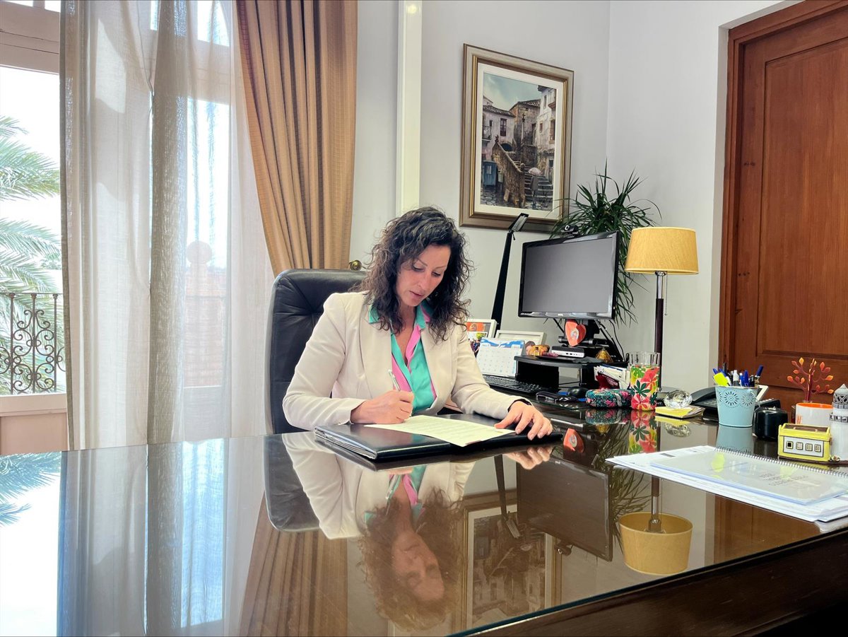 La alcaldesa de Almería, María del Mar Vázquez, rubrica la carta remitida al ministro de Transportes, Óscar Puente. - AYUNTAMIENTO DE ALMERÍA