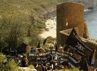 Según un comunicado, un centenar de personas desembarcaron en la mañana de ayer en la Cala de San Pedro, para colocar la primera 'Bandera negra' en este Castillo, de "gran belleza" y ubicado en un enclave "espectacular" de la costa almeriense.