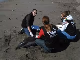 Los miembros de la ONG dieron con el cetáceo tras recibir una llamada alrededor de las 11,00 horas. Un miembro de Equinac acudió hasta la playa para comprobar el estado del ejemplar, un delfín juvenil-adolescente que había muerto recientemente, por lo que se le pudo practicar la necropsia para la recogida de tejidos y su posterior análisis.