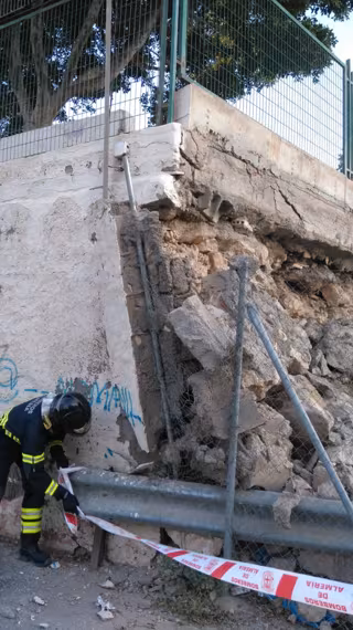 A su llegada, los cinco bomberos han apuntado el saliente sobre el que se sostiene parte del vallado del colegio y han saneado la zona. Asimismo, desde el colegio se ha dado parte a los técnicos de la Delegación Territorial de Educación para evaluar los daños de cara a una actuación.