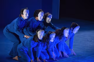Este reflexión se lleva a cabo a través del mito de Edipo, el rey de Tebas, con una puesta en escena vanguardista en la que protagonizada por la intensidad de un azul klein en el vestuario y decorado.