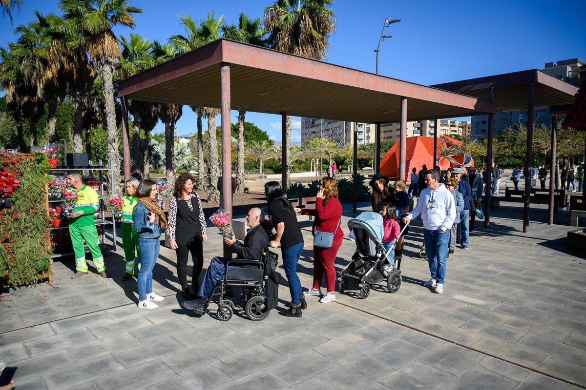 A este último punto se ha trasladado este domingo la alcaldesa de Allmería, María del Mar Vázquez, junto a la concejala de Sostenibilidad Ambiental, Margarita Cobos, con quien ha participado del reparto de pascueros junto a trabajadores de la empresa concesionaria de Parques y Jardines, Entorno Urbano.
