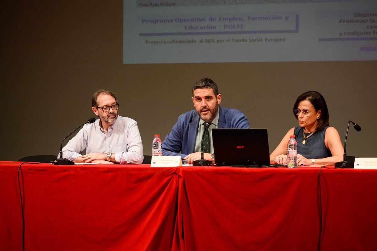 El primer teniente de alcalde y concejal de Presidencia, Juanjo Alonso, ha puesto de relieve la importancia de la formación en la búsqueda de salidas para mujeres víctimas de violencia de género y ha señalado las posibilidades que ofrece el proyecto 'Almería T-Integra con Empleo', desarrollado en el marco del Programa Operativo de Empleo, Formación y Educación (POEFE) y cofinanciado al 80% por el Fondo Social Europeo, "una herramienta de apoyo para quienes sufren esta situación".