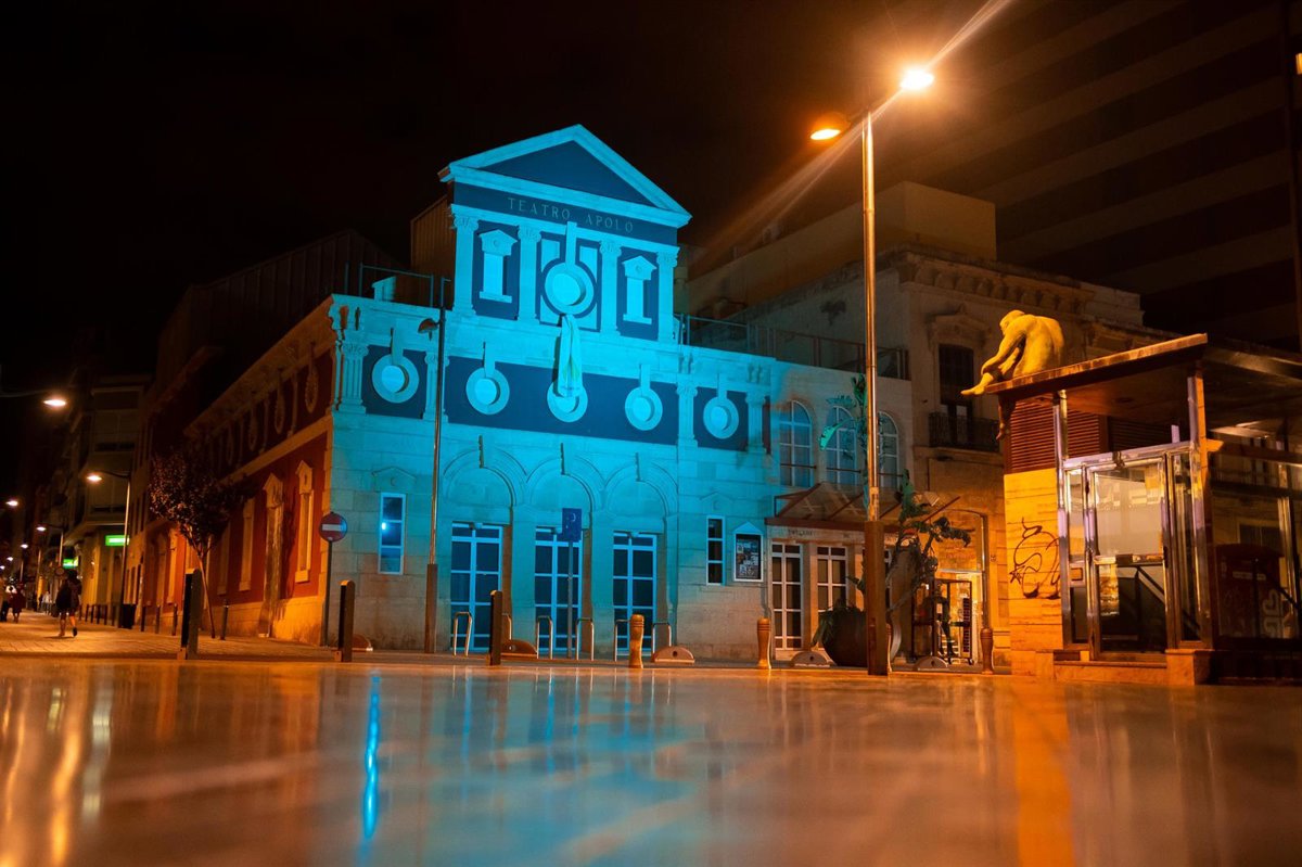 El Ayuntamiento de Almería ha encendido de azul la fachada del Teatro Apolo y las fuentes más emblemáticas de la ciudad con motivo del Día Universal del Niño para mostrar la importancia de cumplir y trabajar por los derechos de la infancia.