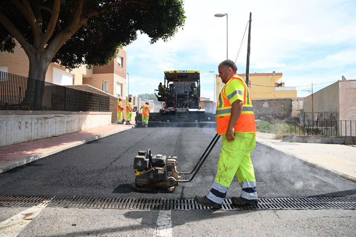 Operarios trabajan en el asfaltado de una de las calles de La Cañada de San Urbano, en Almería. - AYUNTAMIENTO DE ALMERÍA