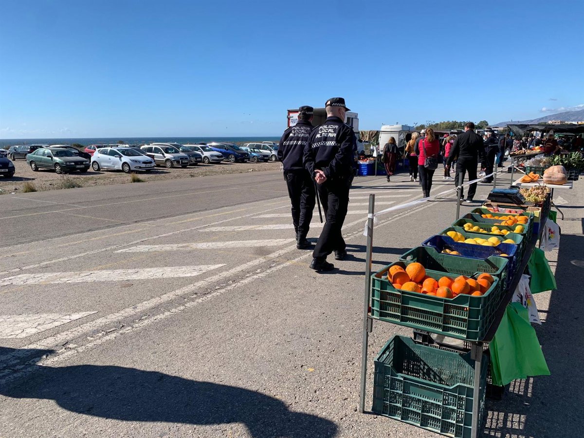 Archivo - Agentes de Policía Local de Almería patrullan por el mercadillo de El Alquián - AYUNTAMIENTO DE ALMERÍA - Archivo