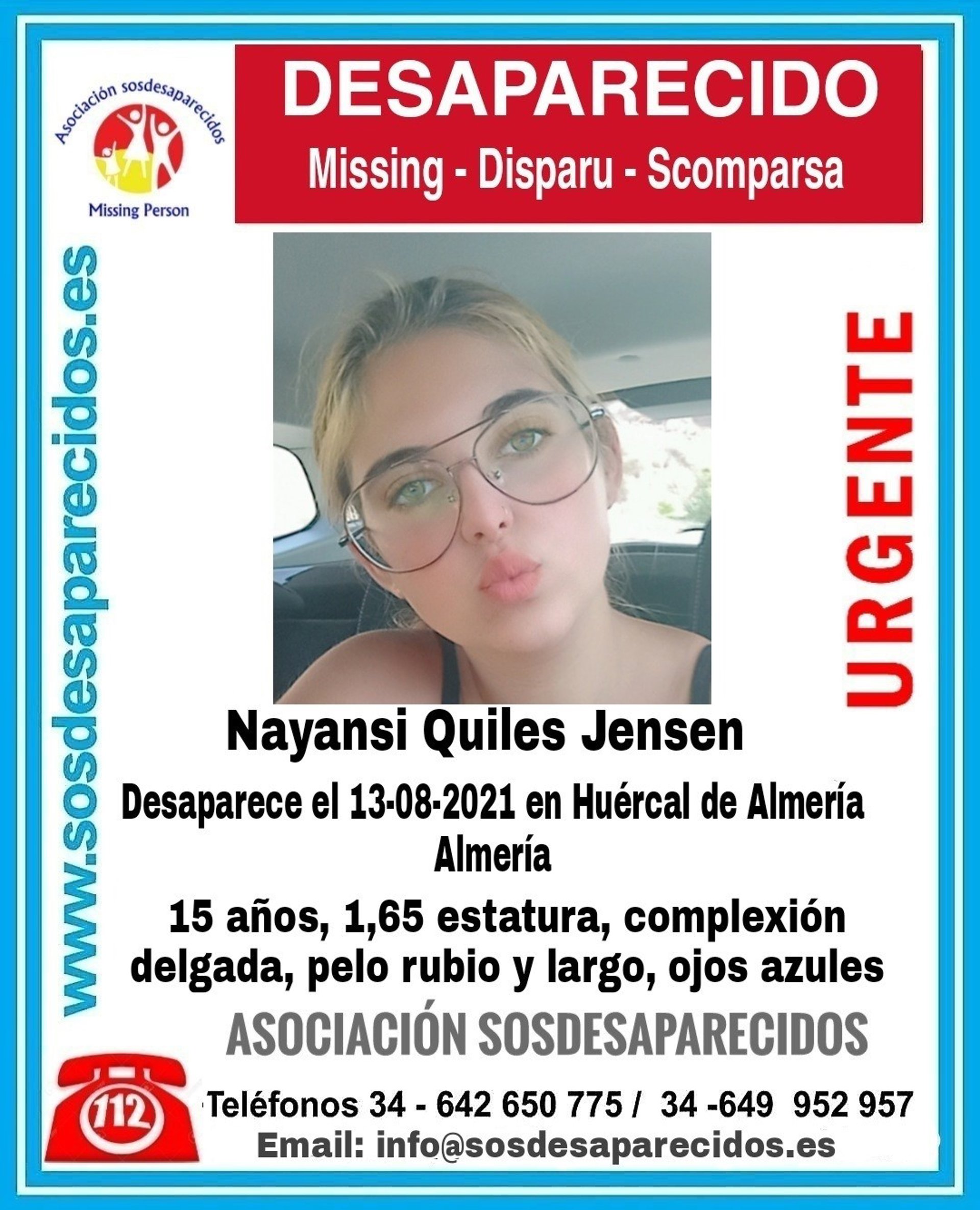 Según han informado fuentes de la asociación a Europa Press, todo apunta a que se trata de "una desaparición voluntaria" de una menor llamada Nayansi Quiles Jensen.