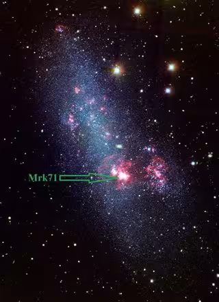 Mrk 71 es tan grande que domina las propiedades de ionización de toda la galaxia NGC 2366, es decir, emite fotones tan energéticos que pueden eliminar el único electrón de cada átomo de hidrógeno a su alrededor. La luz ultravioleta, que los astrónomos creen que fue la responsable de la época de la Reionización, escapa de los confines de esta galaxia. Pero este tipo de luz es extremadamente sensible a la presencia de gas y polvo, y es fácilmente absorbida y dispersada por ambos, de modo que hasta la fecha no conocíamos cómo puede desplazarse semejantes distancias.
