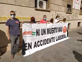 Representantes de los sindicatos UGT y CCOO en Almería se han concentrado este lunes en memoria del último fallecido en accidente laboral en la provincia y han instado la convocatoria de la Mesa de la Comisión de Prevención de Riesgos Laborales (PRL) para exigir la creación de una unidad de subinspección en PRL "debido al alarmante ascenso de los accidentes laborales".