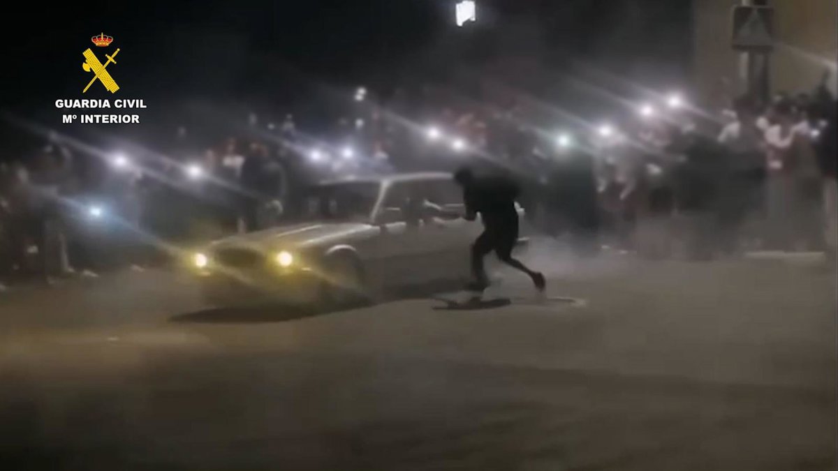La Guardia Civil detalla que las imágenes reflejan que "los conductores, sin ningún tipo de control, cortaban y obstaculizaban la vía de comunicación, bloqueando el tránsito y exponiendo a los peatones a un grave riesgo", ya que se observaba cómo los vehículos circulan a gran velocidad cerca de las personas congregadas en la zona, realizando maniobras conocidas en el argot de los aficionados a las competiciones como 'drifting', 'donuts' o 'burnout', entre otras.