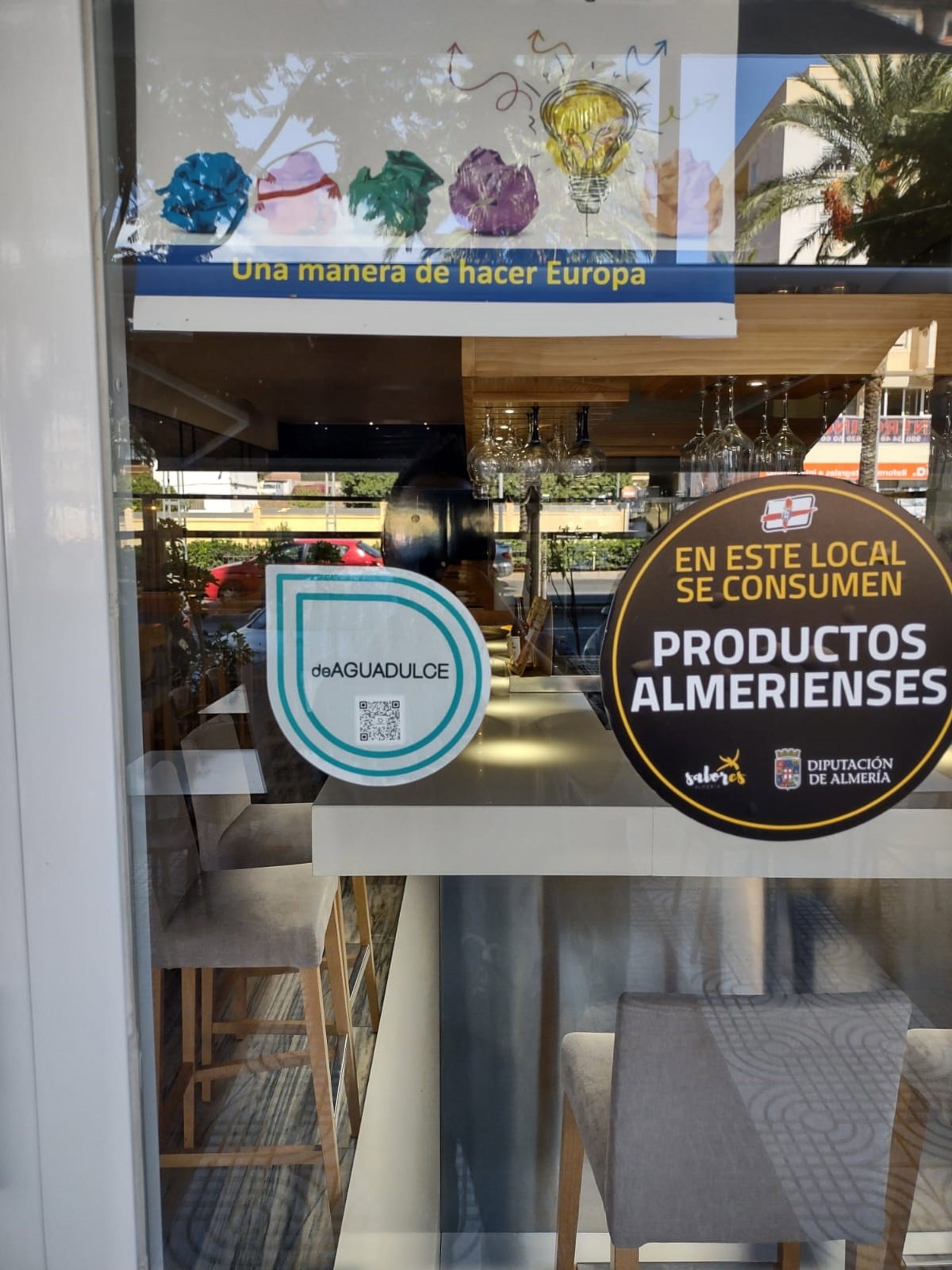 Sello de la plataforma online DeAguadulce en el acceso a un establecimiento. - DEAGUADULCE