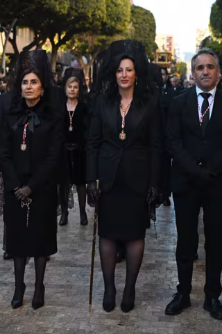La Corporación municipal almeriense, presidida por la alcaldesa de Almería, María del Mar Vázquez, ha acompañado a la Real e Ilustre Hermandad del Santo Sepulcro y Nuestra Señora de los Dolores que, como cada Viernes Santo, ha salido en procesión desde la Iglesia de San Pedro Apóstol con las imágenes de Cristo Yacente y Nuestra Señora de los Dolores para recorrer el Centro Histórico de la capital.
