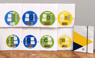 Actualmente se comercializan cuatro tipos de etiquetas, en función del impacto ambiental del vehículo: cero emisiones, de color azul; Eco, de color azul y verde; etiqueta C, de color verde; y etiqueta B, de color amarilla.