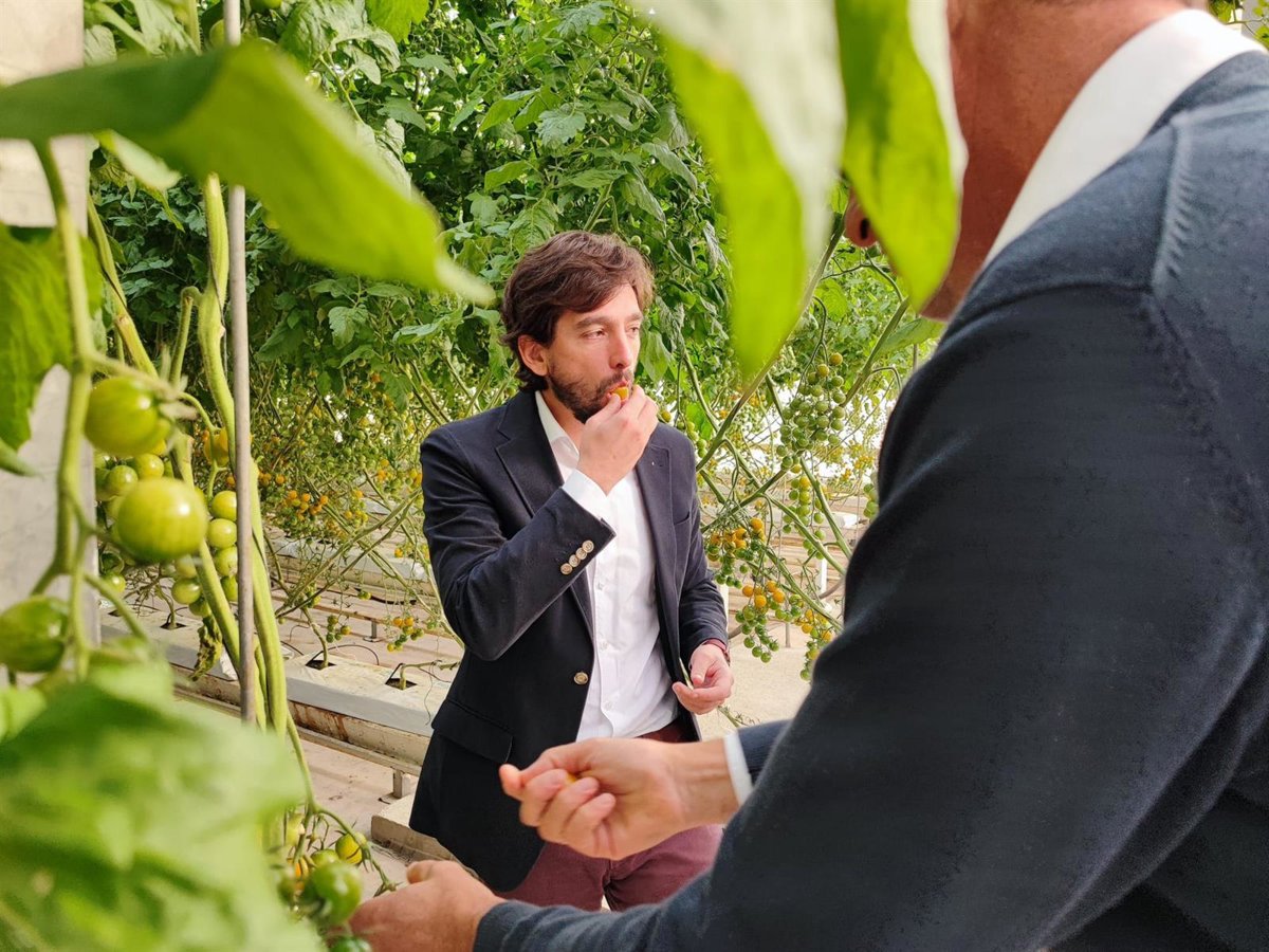 Durante su visita a Agroiris, el eurodiputado naranja ha estado acompañado por la responsable de Relaciones Institucionales de Cs en Andalucía y presidenta del Parlamento andaluz, Marta Bosquet; el parlamentario de la formación liberal, Enrique Moreno; el coordinador de Ciudadanos en Almería, Rafael Burgos, y los miembros del grupo municipal de Cs en el Ayuntamiento de El Ejido, Cecilio Vargas y María Herminia Padial.