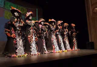 La categoría más pasional del certamen siempre es la de comparsas. En ella, estrenaba la sesión, desde Granada, 'La maldita comparsa', un grupo de mujeres que el año pasado consiguieron colarse en la final con 'La divina comparsa' y que este viernes hicieron una imponente puesta en escena con altar funerario mexicano y un tipo a lo coco.