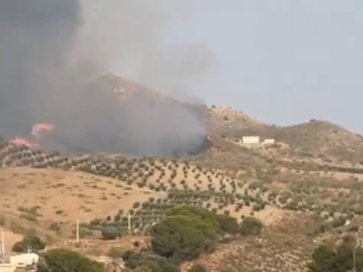 Para el control de las llamas que avanzan en una zona ligeramente escarpada de matorral, próxima a otras zonas de cortijos y cultivos, también se han movilizado dos aviones de carga en tierra.