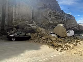 El derrumbe parcial de la ladera de un cerro en la calle Sierra de Gádor del Polígono Industrial La Juaida de Viator (Almería) ha provocado la caída de varias piedras de enormes dimensiones y tierra sobre tres vehículos estacionados en la zona aunque no ha dejado heridos.
