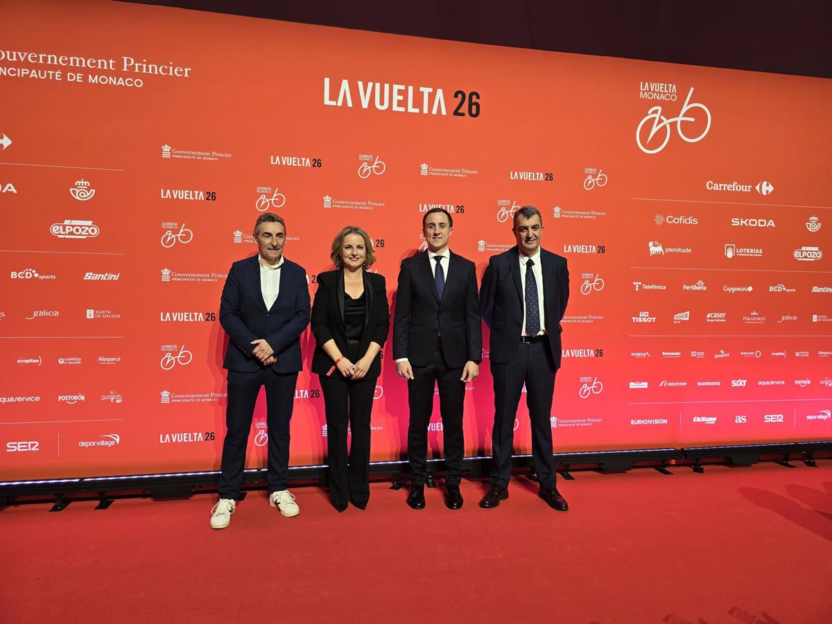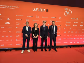 La diputada provincial de Deporte, Vida Saludable y Juventud de Almería, María Luisa Cruz, y el alcalde de Vera, Alfonso García, han asistido a la presentación de 'La Vuelta' 2026, celebrada este miércoles en el Monte-Carlo Sporting Club Salle des Étoiles, en Mónaco.