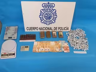 Durante la entrada y registro llevada a cabo en la vivienda de la calle África, la Policía Nacional desmanteló una plantación de marihuana con 155 plantas en proceso de crecimiento e intervino 500 gramos de hachís, tres básculas de precisión, 2.360 euros en efectivo, siete transformadores, siete bombillas de 600 vatios, dos filtros y un extractor de aire.
