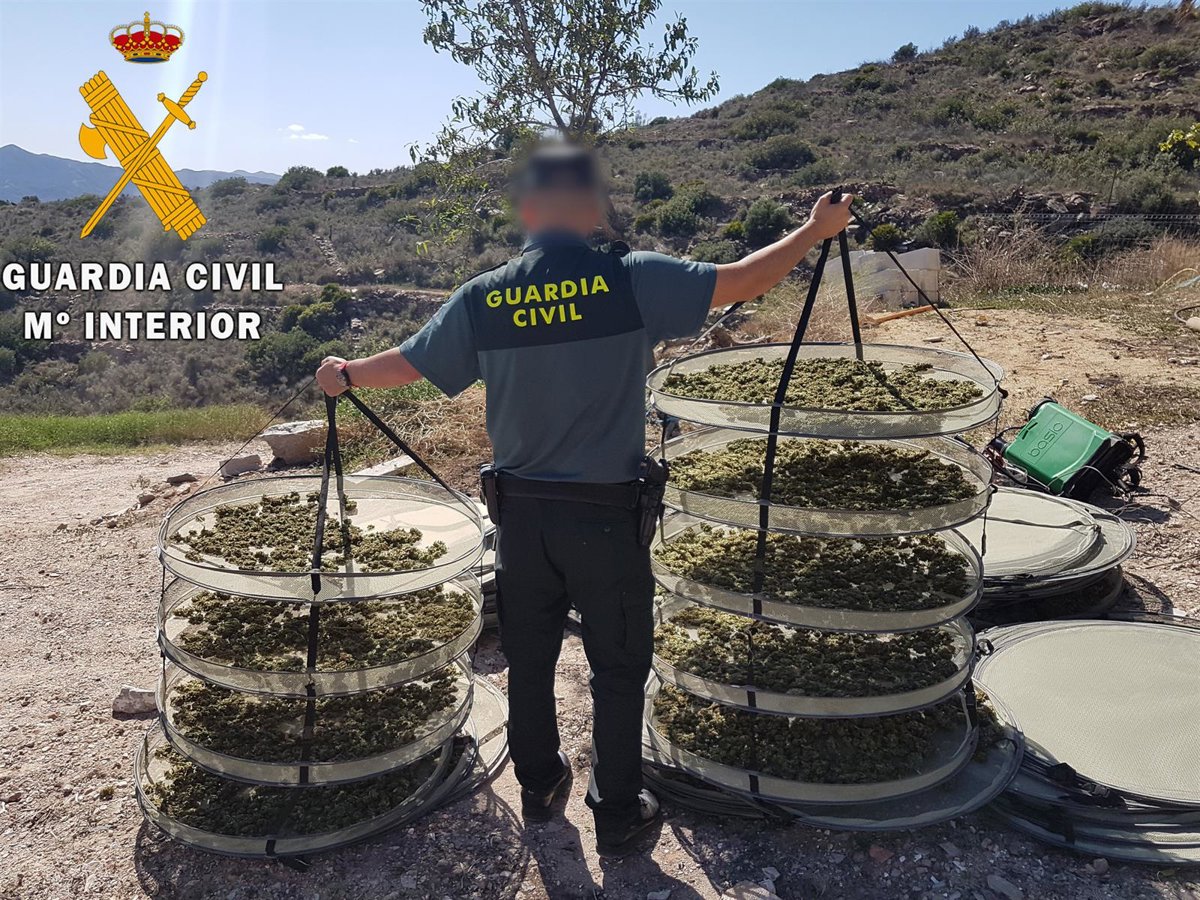 La Guardia Civil se ha incautado de un total de 35.400 kilogramos de cogollos de marihuana de una finca rústica dedicada al almendro y pastos, ubicada en el paraje el Albarico del término municipal de Bédar (Almería), y ha detenido y puesto a disposición del Juzgado de Instrucción número 4 de Vera (Almería) a cinco personas de entre 24 y 66 años acusadas de su vinculación con la droga y de delitos contra la salud pública.