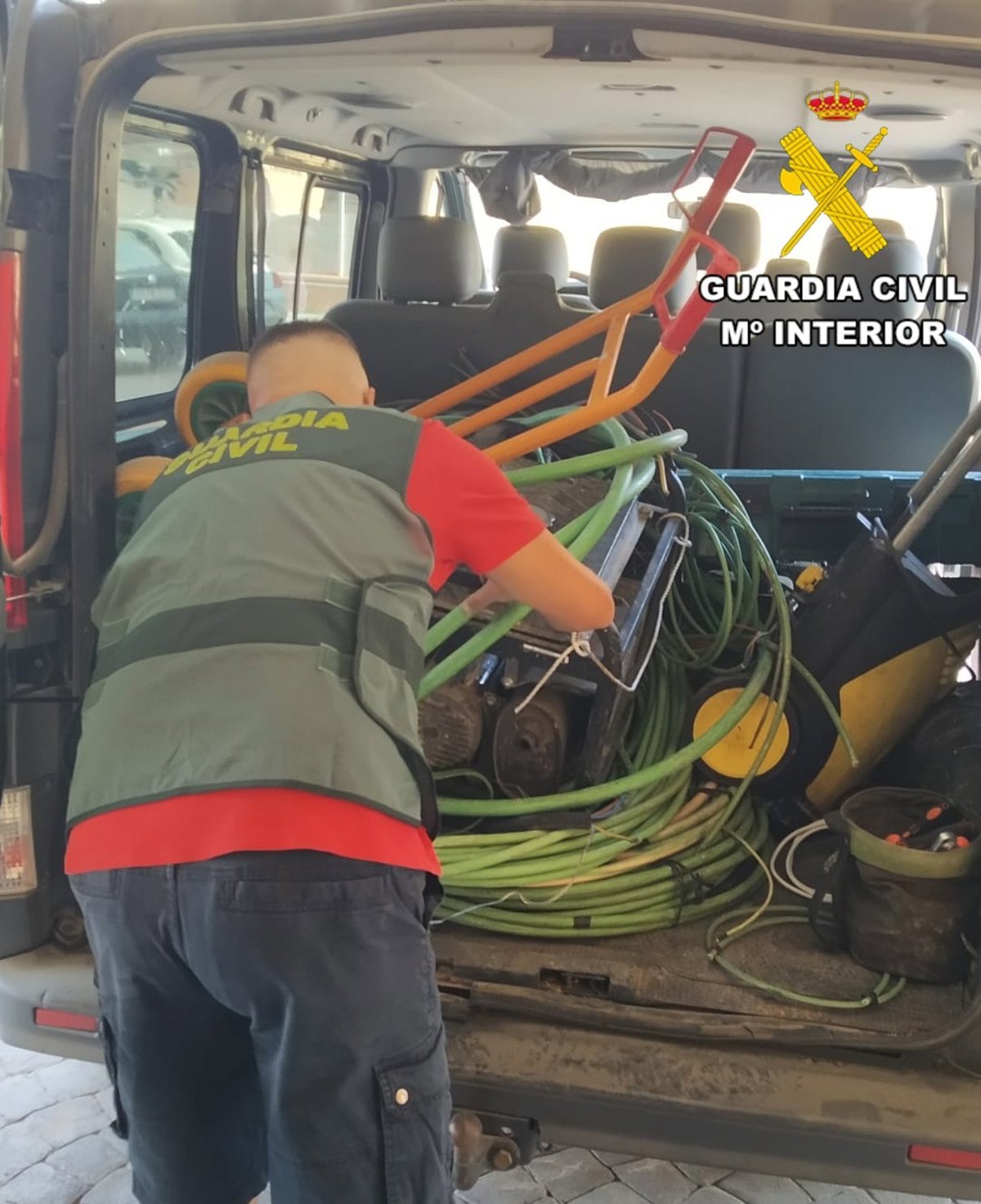 El material sustraído, a excepción de la segunda furgoneta, fue encontrado en el domicilio familiar que compartía con su mujer y un hijo menor de edad en una actuación conjunta con la Policía Local de Cuevas del Almanzora.