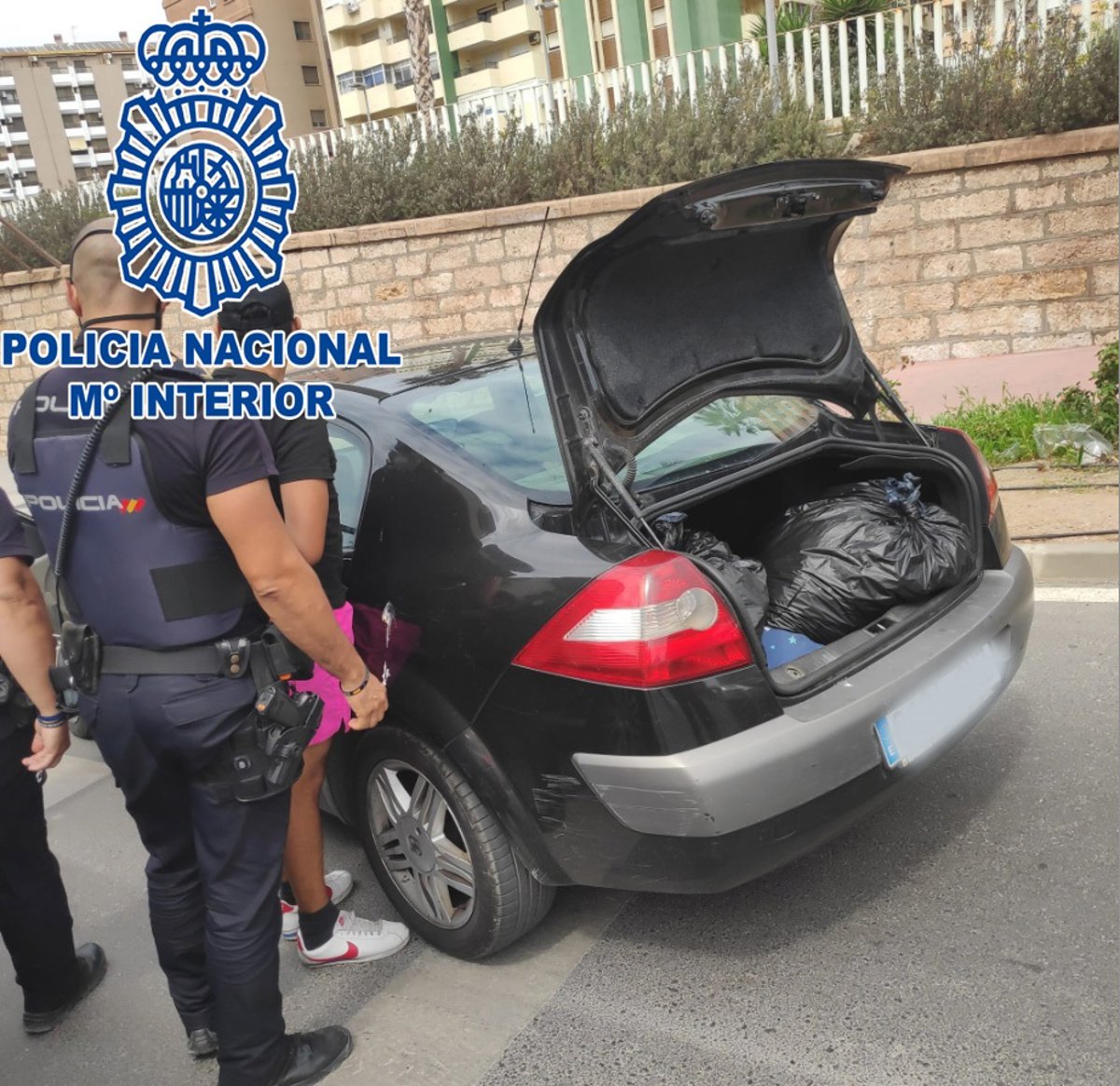 La Policía Nacional ha detenido en Almería a un hombre de 34 años identificado como J.A.S.G. que fue sorprendido con siete kilos de marihuana en su maletero cuando circulaba por el barrio de El Puche, si bien la detención se practicó en la avenida Cabo de Gata tras lograr interceptar el vehículo.