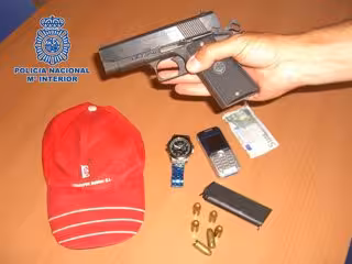 El mismo, al verse sorprendido por los agentes sacó una pistola, siendo rápidamente reducido y finalmente desarmado por los policías actuantes. Se le intervino una pistola de calibre 45 milímetros con seis cartuchos, uno en la recamara, dos en el cargador y tres ocultos entre su ropa.
