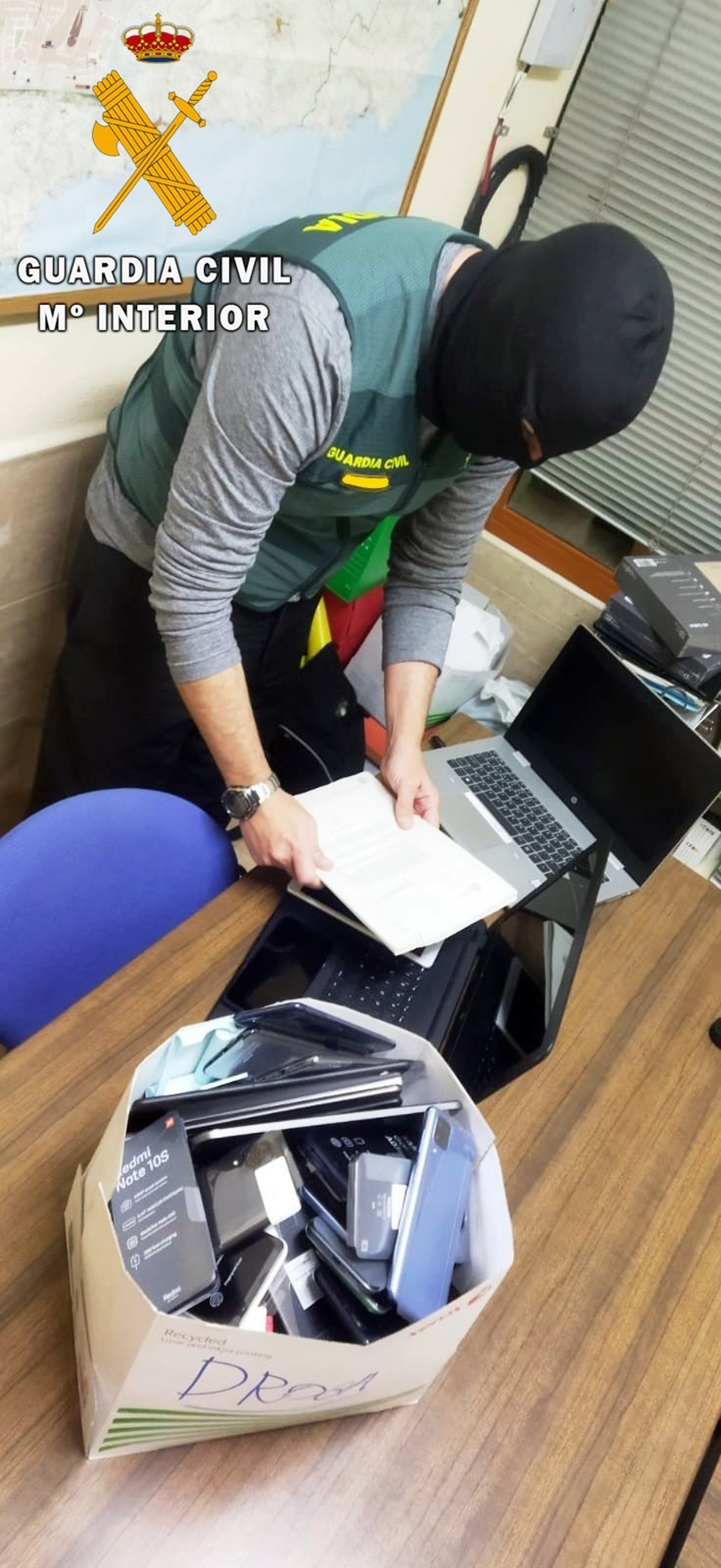 Según la investigación policial, los sospechosos se encontraban alojados en una casa rural cercana a lugar donde estaba el coche sustraído en la que se hallaron 123 teléfonos móviles, ocho tablets y un ordenador portátil pertenecientes, en su mayoría, a los botines de dos robos con fuerza cometidos en Vera (Almería) y Puerto Lumbreras (Murcia).