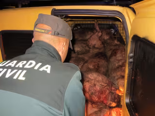 El vehículo hizo caso omiso a las señalas y emprendió la huida aunque la Guardia Civil pudo darle alcance a los pocos metros debido en parte al gran peso de la carga que transportaba. Los dos ocupantes tenían las manos y ropas ensangrentadas, así como el calzado manchado de excremento de animal, "por lo que desprendían un fuerte olor a porcino".
