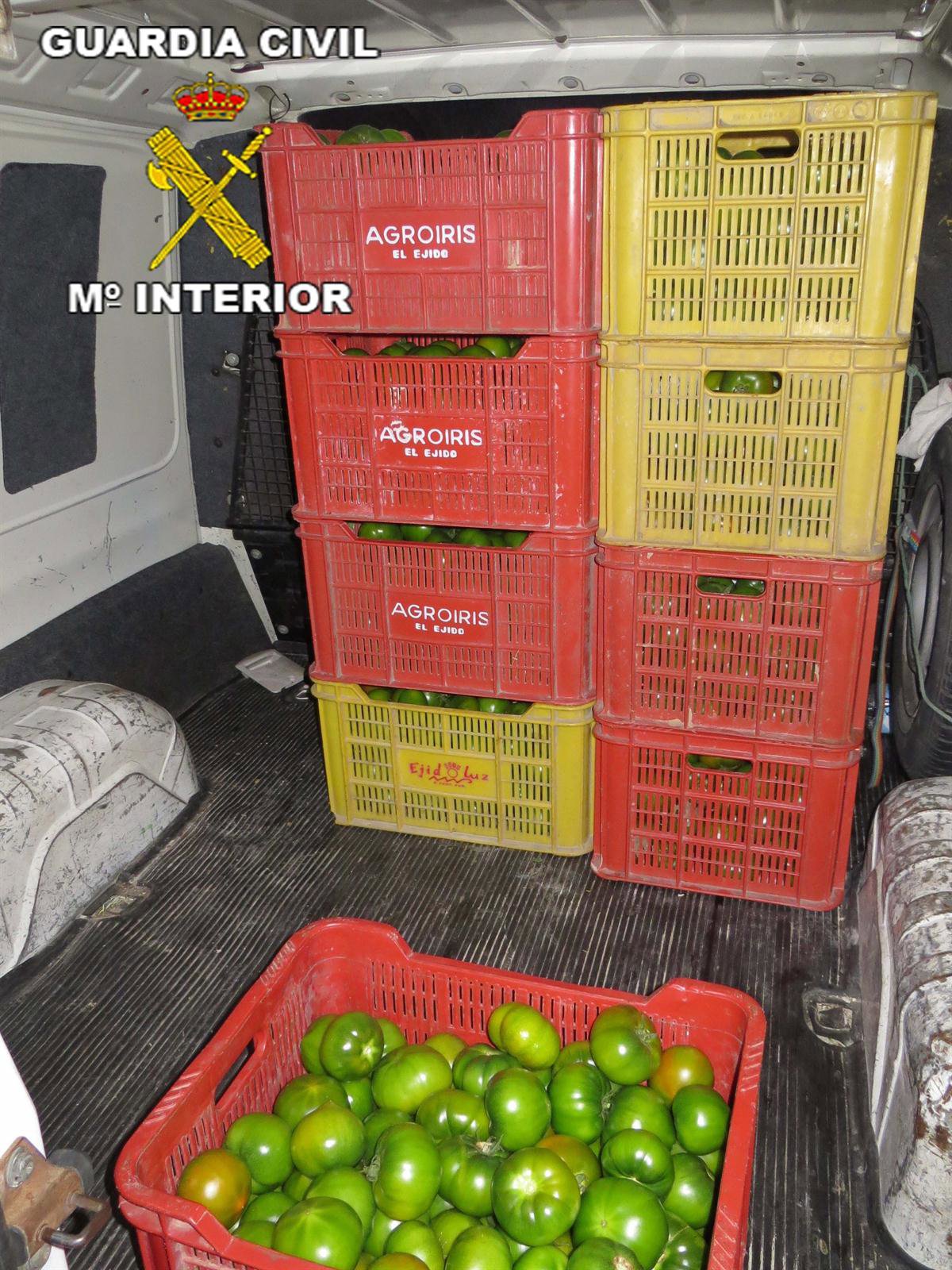La Guardia Civil de Almería ha detenido a W.L.T., de 31 años, y a N.B., de 25, ambos vecinos de El Ejido (Almería), como presuntos autores de un delito de robo con fuerza en las cosas cometido en una explotación agrícola de la comarca del Poniente almeriense de la que se extrajeron 22 cajas con 440 kilogramos de tomates.