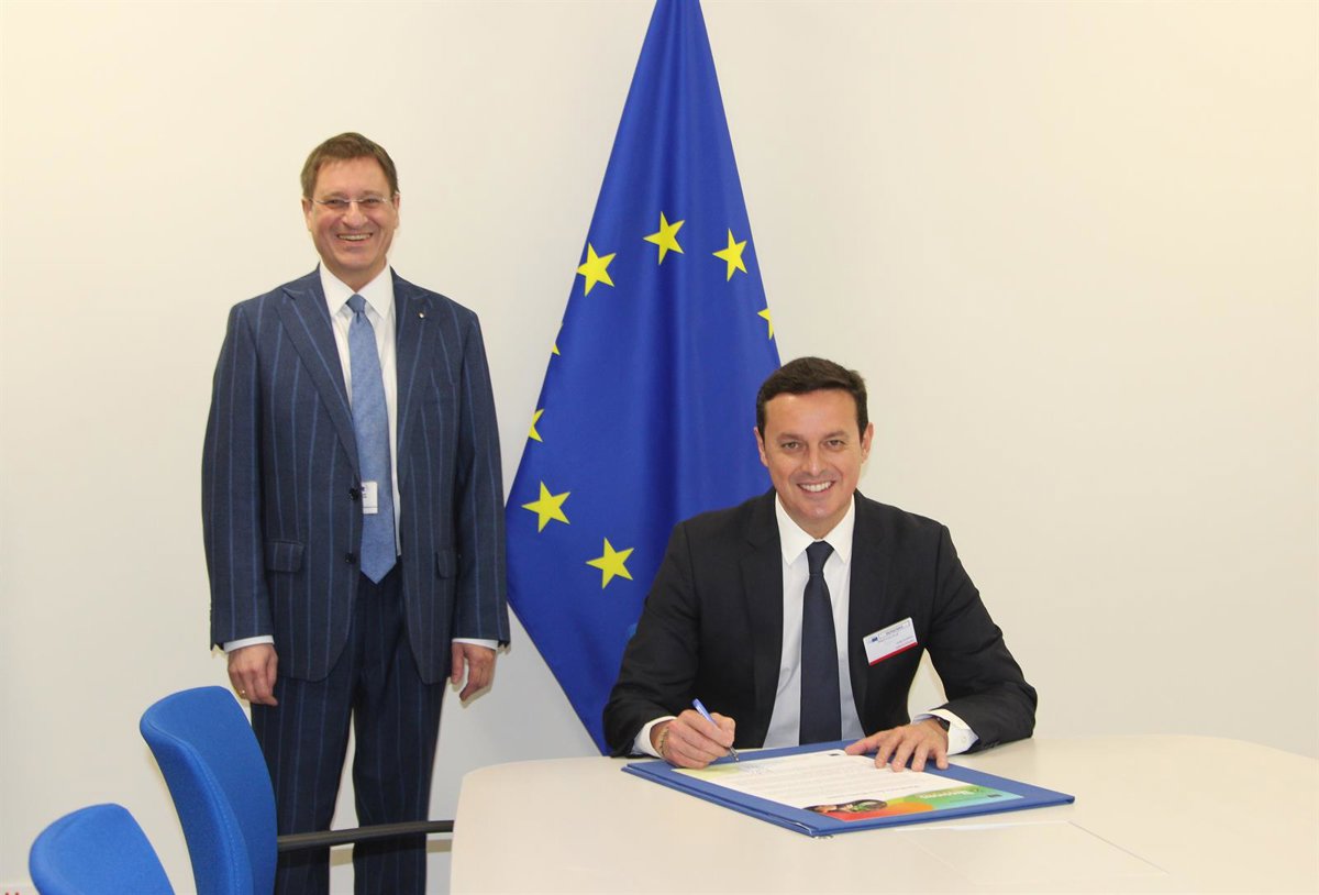 La firma se ha producido este martes en el Parlamento Europeo, en Bruselas, en un acto que ha contado con la participación del presidente de la Diputación de Almería, Javier Aureliano García, quien ha sellado su firma junto a la del director de la Misión Suelo y subdirector general de la Dirección General de Agricultura y Desarrollo Rural de la Comisión Europea, Michael Niejahr.