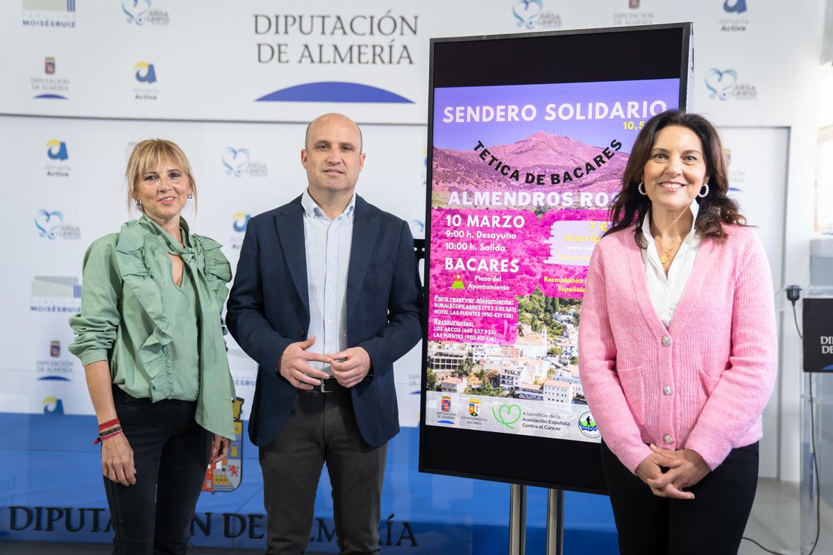 La Diputación de Almería colabora en la lucha contra el cáncer a través de una actividad deportiva y solidaria como es el sendero 'Tetica de Bacares Almendros Rosas', que se celebrará el próximo domingo en el municipio de Bacares y que reunirá a 250 participantes. Todo lo recaudado será destinado íntegramente a la Asociación Española Contra el Cáncer.