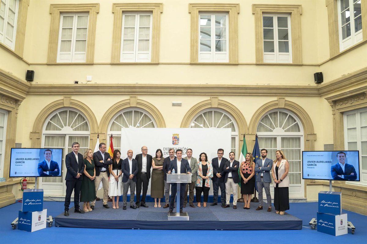 El presidente de la Diputación Provincial de Almería, Javier Aureliano García, ha presentado este miércoles la estructura del equipo de gobierno de la institución provincial, que contará con cinco vicepresidencias y nueve áreas con seis delegaciones especiales en las que se repartirán los 15 diputados provinciales del PP que lo acompañan para esta corporación.