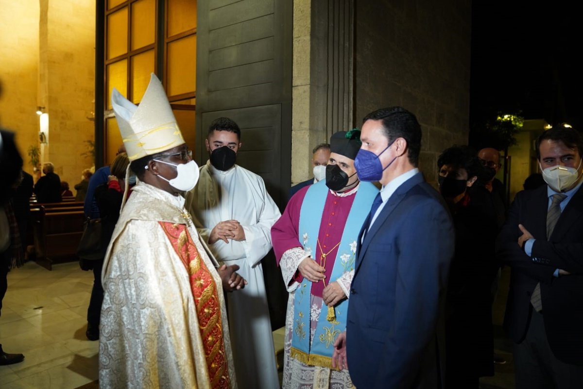 El acto ha sido oficiado por Ramón Garrido, fundador de Providentia, y monseñor Cyprien, obispo misionero de Ciudad de Boma, en la República democrática de El Congo. Tras la lectura del Evangelio y la bienvenida de Ramón Garrido, el obispo ha procedido a la bendición de la luz que iluminará al Protector de la Provincia de Almería. Acto seguido, el presidente y los diputados han colaborado en la colocación de las velas en las lámparas votivas del Glorioso San José.