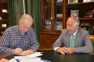 El presidente de la institución, Gabriel Amat, ha recibido en su despacho al alcalde, Juan Herrera, para llevar a cabo la firma del convenio de colaboración entre ambas instituciones que tiene por objeto regular las condiciones de la asistencia económica para la financiación de estas obras de mejora en el abastecimiento.