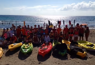 La jornada comenzó con el recibimiento por la mañana a los participantes en la Playa de las Negras, unos deportistas que madrugaron para poder disfrutar al máximo del día y de las propuestas deportivas programadas por la Diputación. Posteriormente, se crearon dos subgrupos, dirigiéndose uno de ellos a practicar el kayak en El Playazo. Esta modalidad se realiza de forma básica y con la ayuda de los monitores, por lo que está abierta al público en general, sea cual sea su nivel. El otro grupo realizó trekking en la misma zona antes de intercambiar la actividad.
