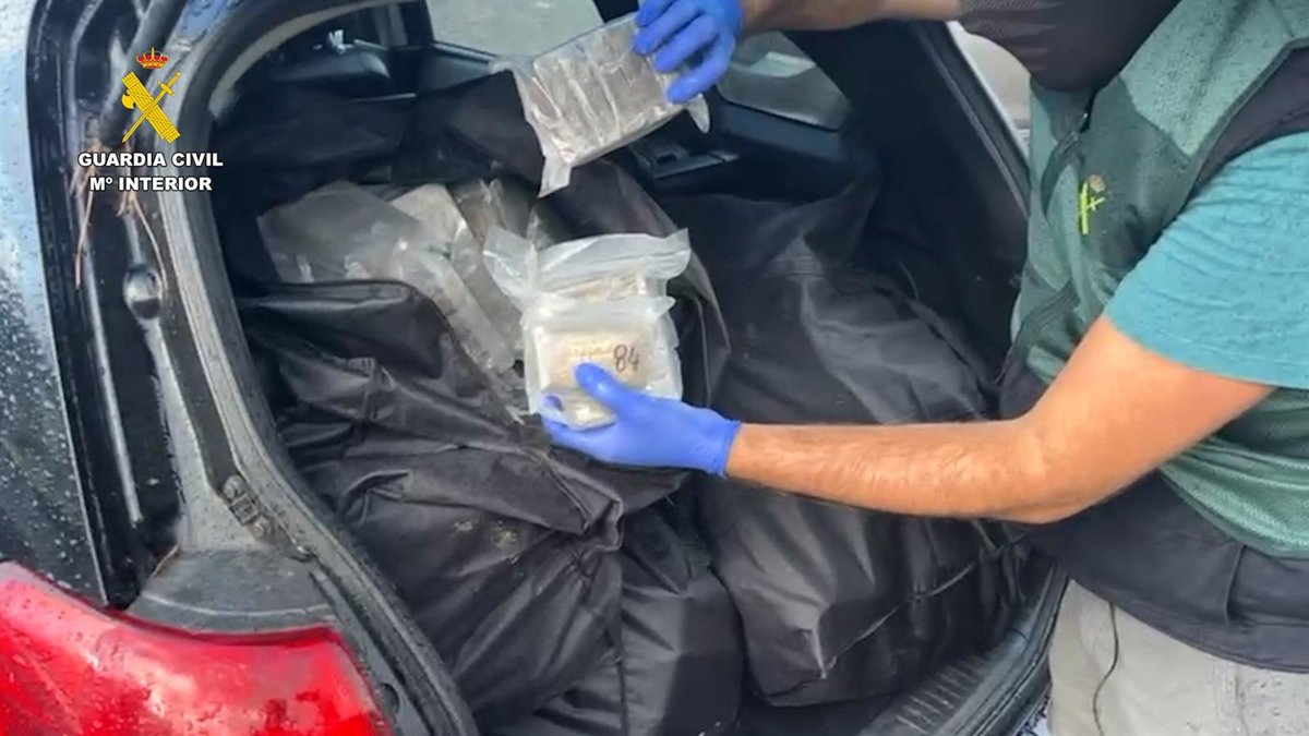 Tras la inspección del vehículo, que contaba con un doble fondo bajo el tapizado del maletero cuya apertura se accionaba mediante un sistema hidráulico, los agentes localizaron en su interior 165,4 kilogramos de hachís, una cantidad cuyo valor en el mercado ilícito superaría los 300.000 euros.