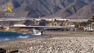 Tras ser sorprendida por el helicóptero de la Guardia Civil, la patera emprendió su huida hacia la playa, donde fue localizada por personal de la Guardia Civil.