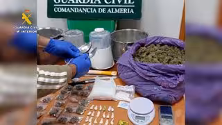 La Guardia Civil ha detenido a dos varones, de 26 y 30 años, tras desmantelar un activo punto de venta de estupefacientes en Roquetas de Mar (Almería), donde también operaba un laboratorio clandestino para la elaboración y el corte de la droga.