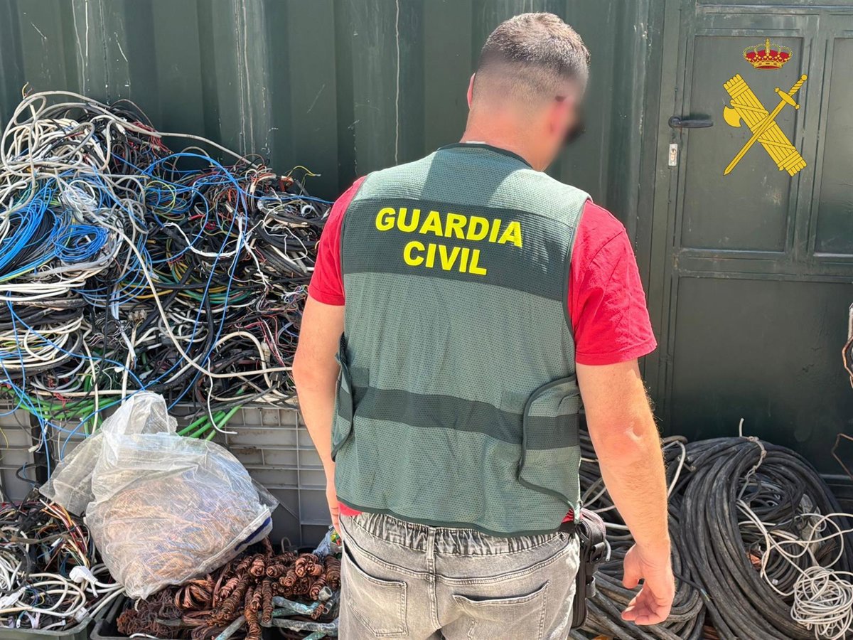 El material sustraído, almacenado en un cajón destinado habitualmente al transporte de sandías, procedía de la reciente reforma eléctrica de un establecimiento de hostelería, lo que le confería un "elevado valor económico".
