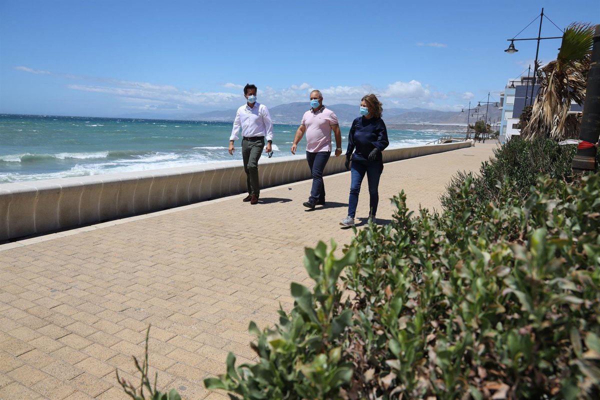 El alcalde, Francisco Góngora (PP), junto a la edil de Turismo, Luisa Barranco, el presidente de la Junta Local de Balerma, Antonio Gómez y el presidente de la Junta Local de Guardias Viejas, Ángel Callejón, ha visitado estos núcleos costeros para comprobar in situ el estado actual de las playas que desde hace tiempo sufren problemas de regresión y desgaste.
