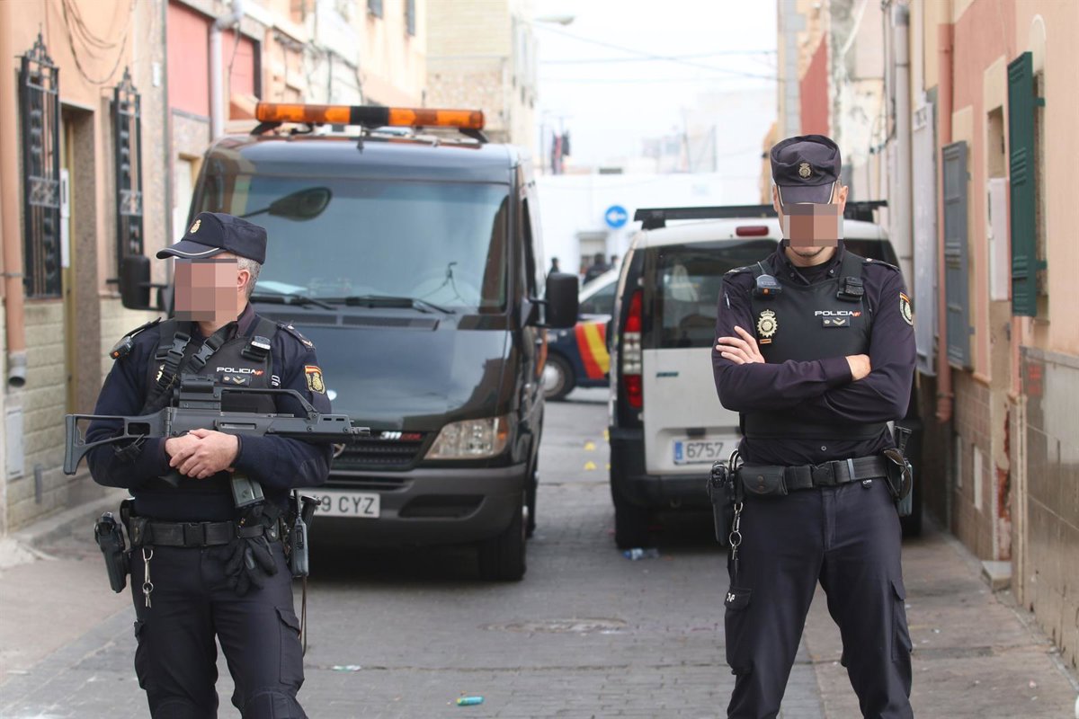 Policías acordonan la calle Valdivia del barrio almeriense de Pescadería-La Chanca donde se ha producido el tiroteo con resultado de un muerto. Almería a 4 de febrero del 2020 - Rafael González - Europa Press