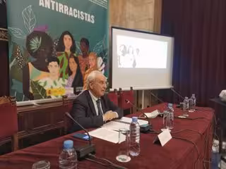 El subdelegado del Gobierno, Manuel de la Fuente, ha dado la bienvenida a los asistentes a la Subdelegación del Gobierno en Almería, que acoge las dos últimas jornadas de la II Semana Antirracista organizada por el Ministerio de Igualdad, marco en el que se encuadra la presentación del citado estudio.